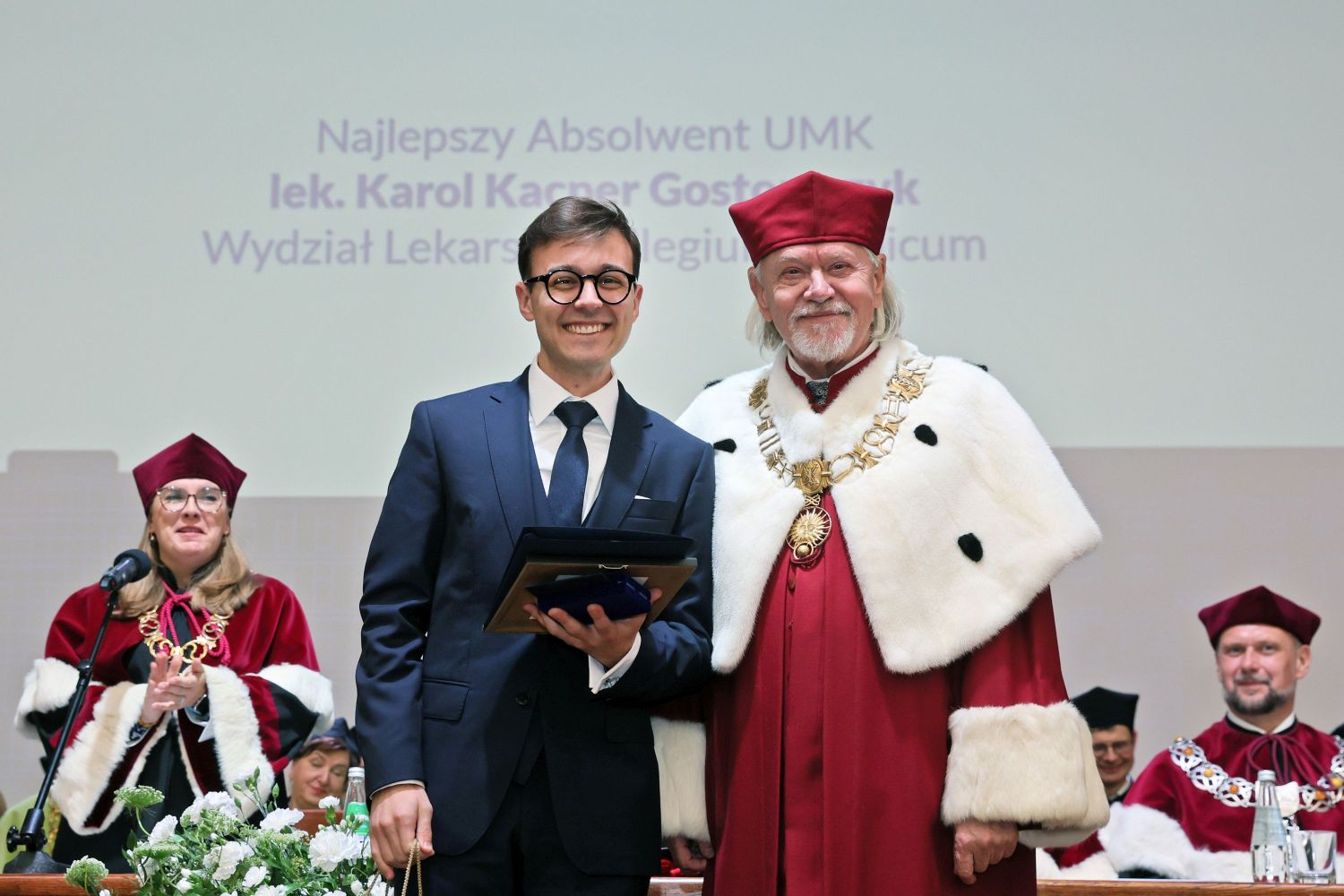 Najlepszym absolwentem UMK w minionym roku akademickim został lek. Karol Gostomczyk, absolwent kierunku lekarskiego na Wydziale Lekarskim Collegium Medicum UMK. Laureat ma na koncie wiele imponujących osiągnięć naukowych, jest między innymi autorem i współautorem 17 publikacji naukowych oraz doniesień konferencyjnych o łącznym IF 36,0 oraz łącznej punktacji MNiSW 815 pkt.