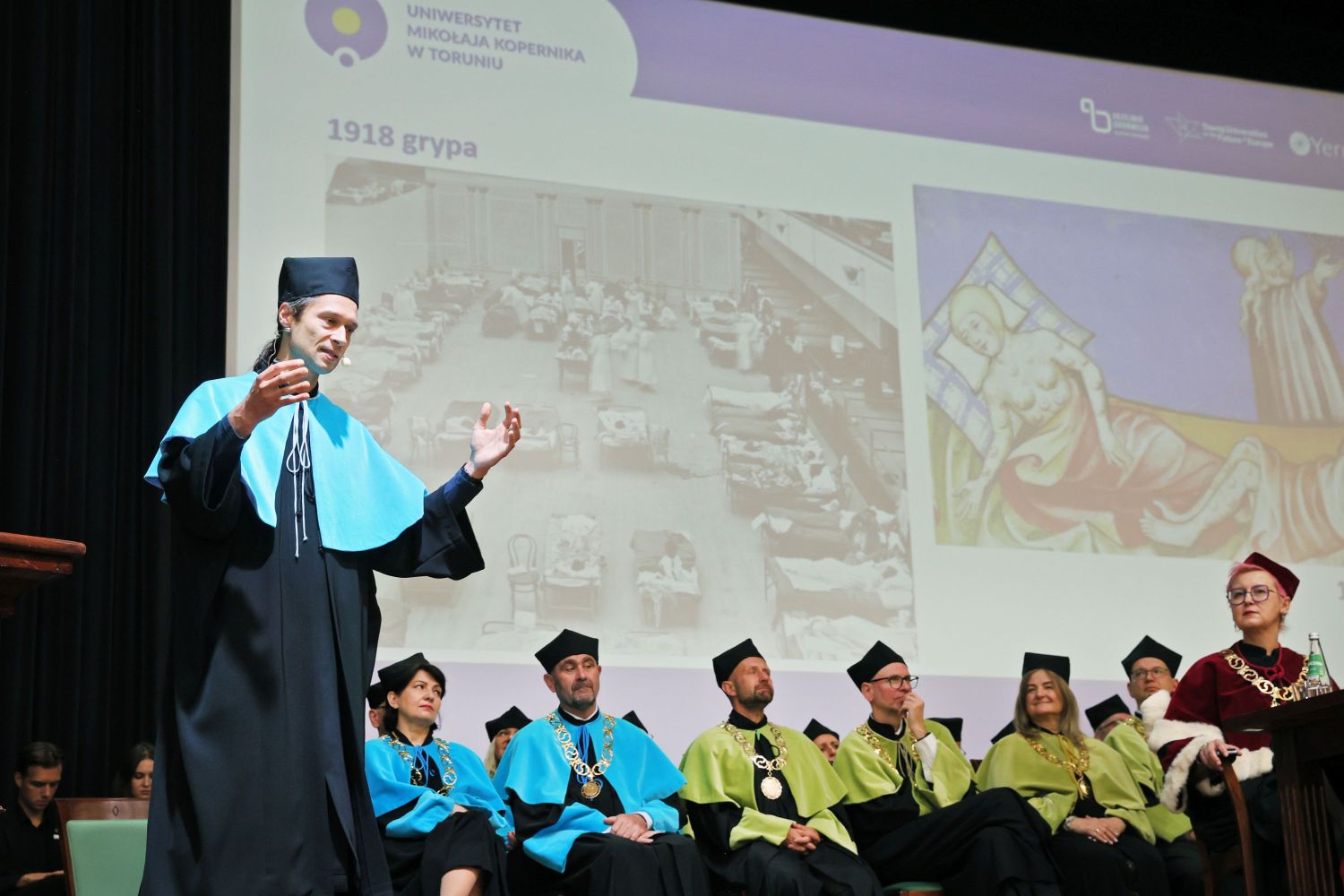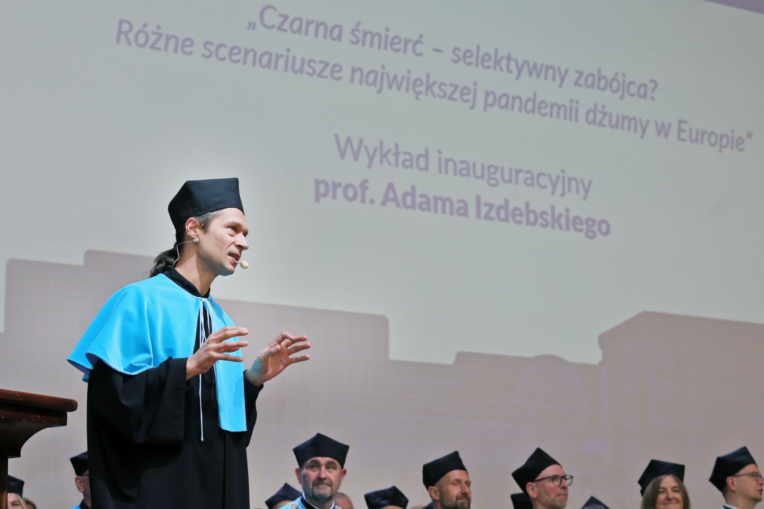 Wykład inauguracyjny pt. "Czarna śmierć – selektywny zabójca? Różne scenariusze największej pandemii dżumy w Europie" wygłosił prof. dr hab. Adam Izdebski z Interdyscyplinarnego Centrum Nowoczesnych Technologii. Warto dodać, że wraz z początkiem roku akademickiego rozpoczyna się realizacja międzynarodowego projektu badawczego "Zrozumieć na nowo rolę pandemii (1300-1800): historia, nauki przyrodnicze i uczenie maszynowe", finansowanego w ramach prestiżowego grantu ERC Synergy. Jego liderem jest prof. Izdebski.