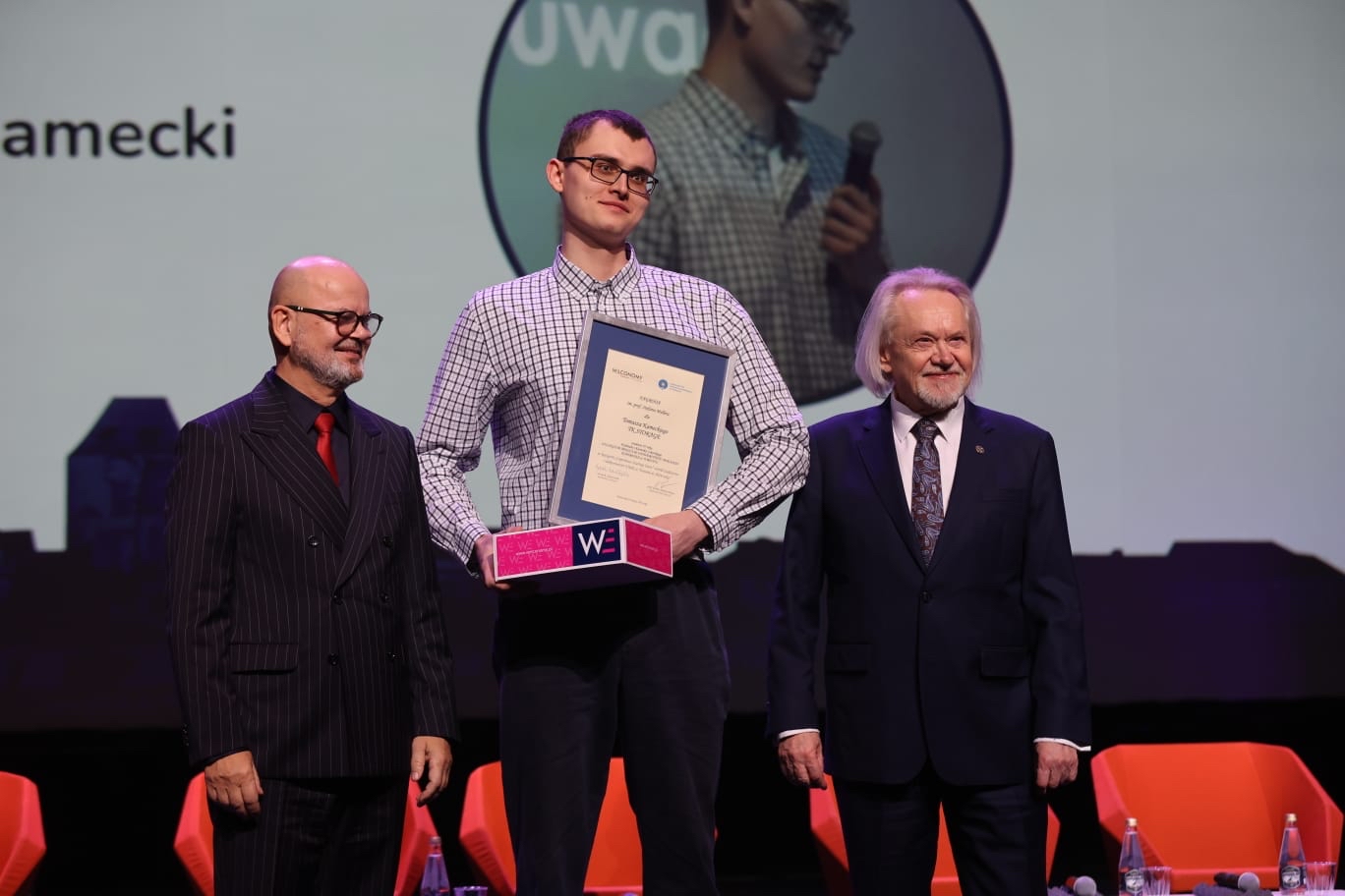 Nagrodę im. prof. Stefana Mellera podczas uroczystej sesji plenarnej inaugurującej Welconomy Forum wręczyli Tomaszowi Kameckiemu rektor UMK prof. dr hab. Andrzej Tretyn i dr Jacek Janiszewski, wiceprezes Stowarzyszenia "Integracja i Współpraca", które jest organizatorem Welconomy.