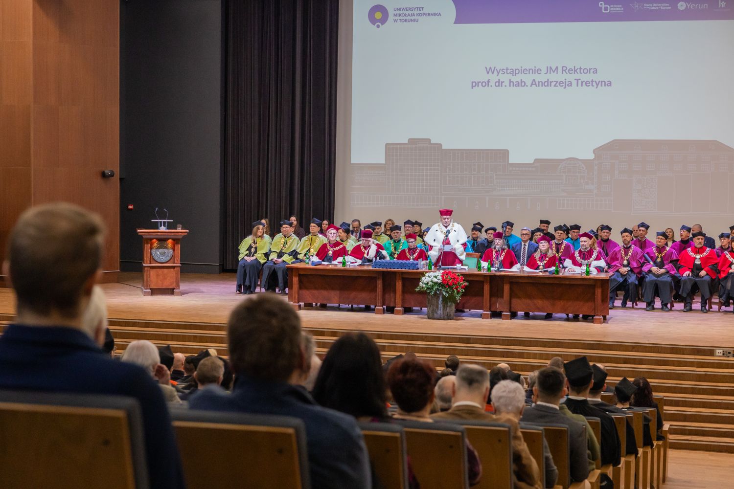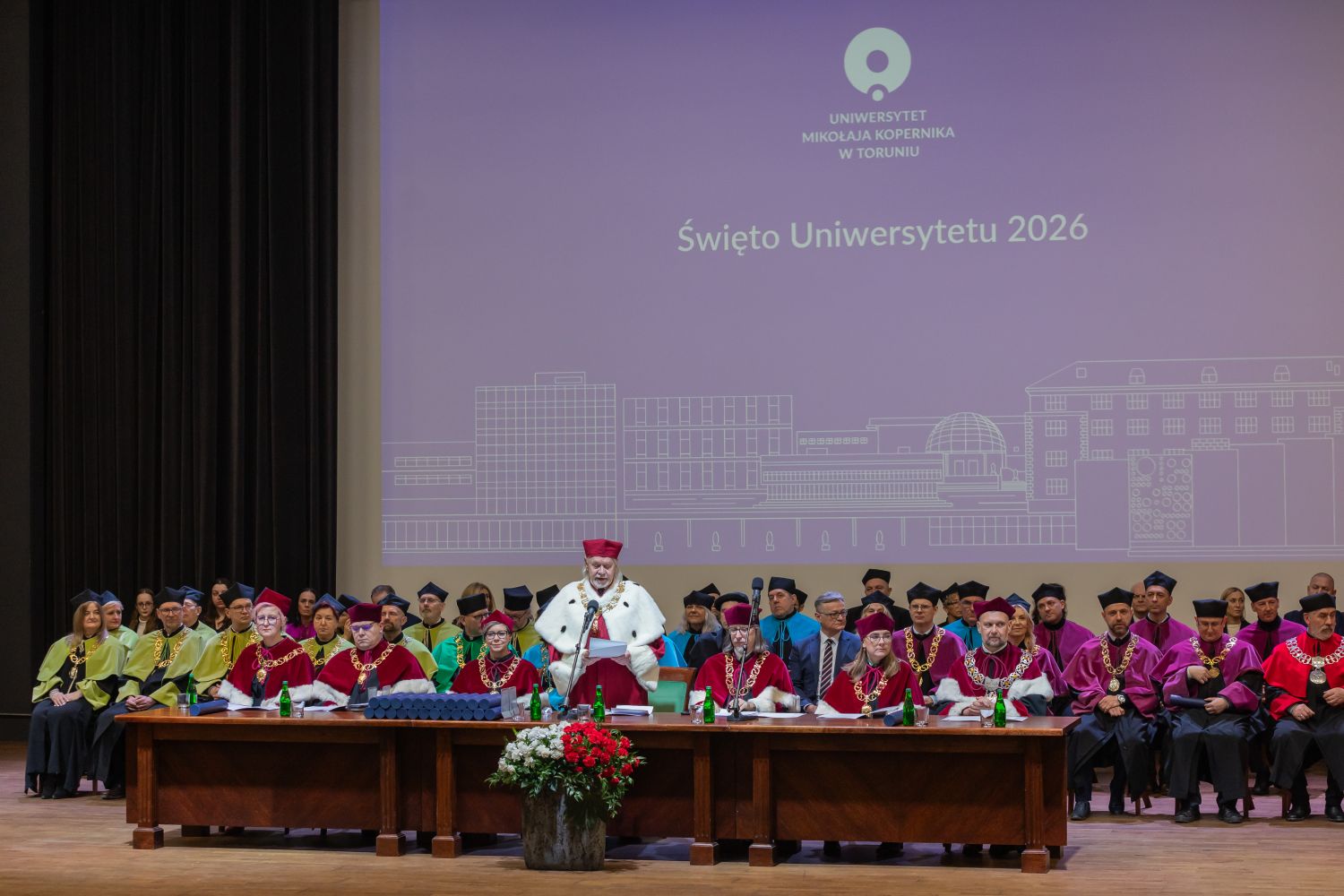 – Wszechstronność naszej społeczności, niezliczone pola i kierunki badań, które prowadzimy, to solidny fundament naszej pozycji – mówił w swoim wystąpieniu z okazji Święta Uniwersytetu JM Rektor UMK prof. dr hab. Andrzej Tretyn. – Z powodzeniem szukamy odpowiedzi na pytania nurtujące ludzkość od zawsze i podejmujemy najnowsze wyzwania cywilizacji.