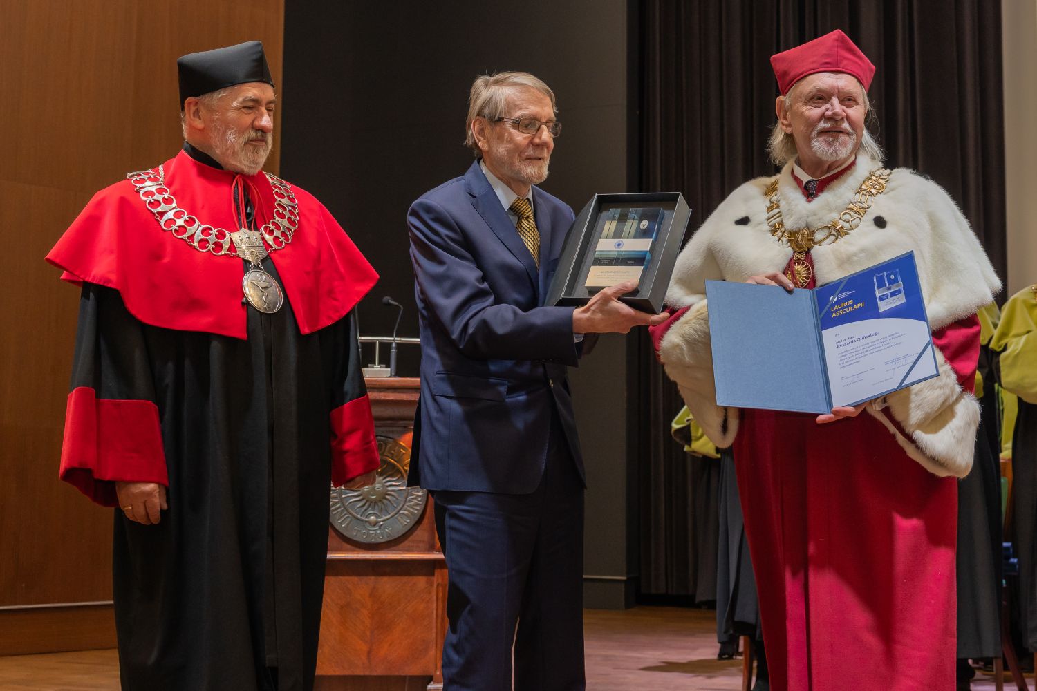 Nagrodą Laurus Aesculapii, honorowym wyróżnieniem przyznawanym od 2024 r. za wybitny wkład do nauki i szczególne zasługi dla rozwoju Collegium Medicum UMK, uhonorowany został prof. dr hab. Ryszard Oliński, jeden z organizatorów Wydziału Farmaceutycznego Akademii Medycznej w Bydgoszczy, twórca Katedry Biochemii Klinicznej, w latach 1991-1996 prorektor ds. nauki i współpracy z zagranicą AM, a od 2012 do 2016 – pełnomocnik rektora ds. nauki i współpracy z zagranicą. W pracy naukowej zajmuje się przede wszystkim patogenezą nowotworów oraz wykorzystaniem metod biologii molekularnej, genomiki i proteomiki do ich wczesnego wykrywania, a także rozwojem nowych metod terapii nowotworów złośliwych.