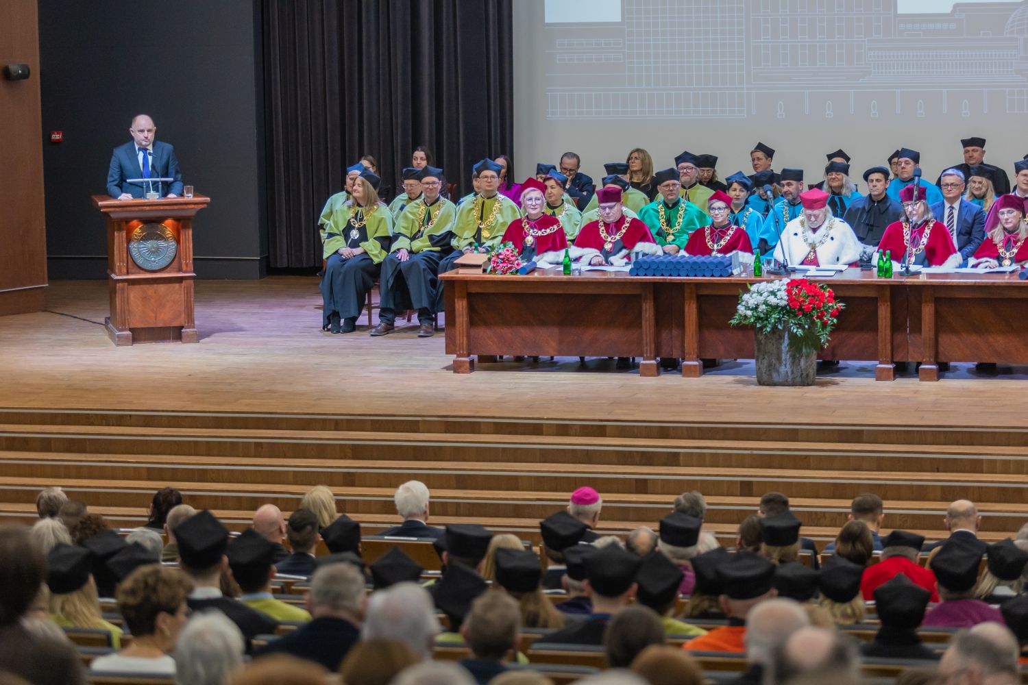 W swoim wystąpieniu rektor prof. dr hab. Andrzej Tretyn podsumował sukcesy uczelni w minionym roku, wskazał również wyzwania, przed którymi staje społeczność Uniwersytetu w nadchodzących miesiącach, takie jak historyczna termomodernizacja budynków Biblioteki Uniwersyteckiej i Rektoratu i druga edycja programu Inicjatywa Doskonałości – Uczelnia Badawcza.
